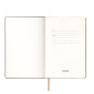 Матовое покрытие Soft Touch с деликатным пудровым эффектом подарит неповторимое тактильное удовольствие. А кремовые форзац, нахзац и срез блока создадут гармоничное обрамление для гладких шелковистых страниц кремового оттенка. Элегантное атласное ляссе поможет вам легко ориентироваться в записях.