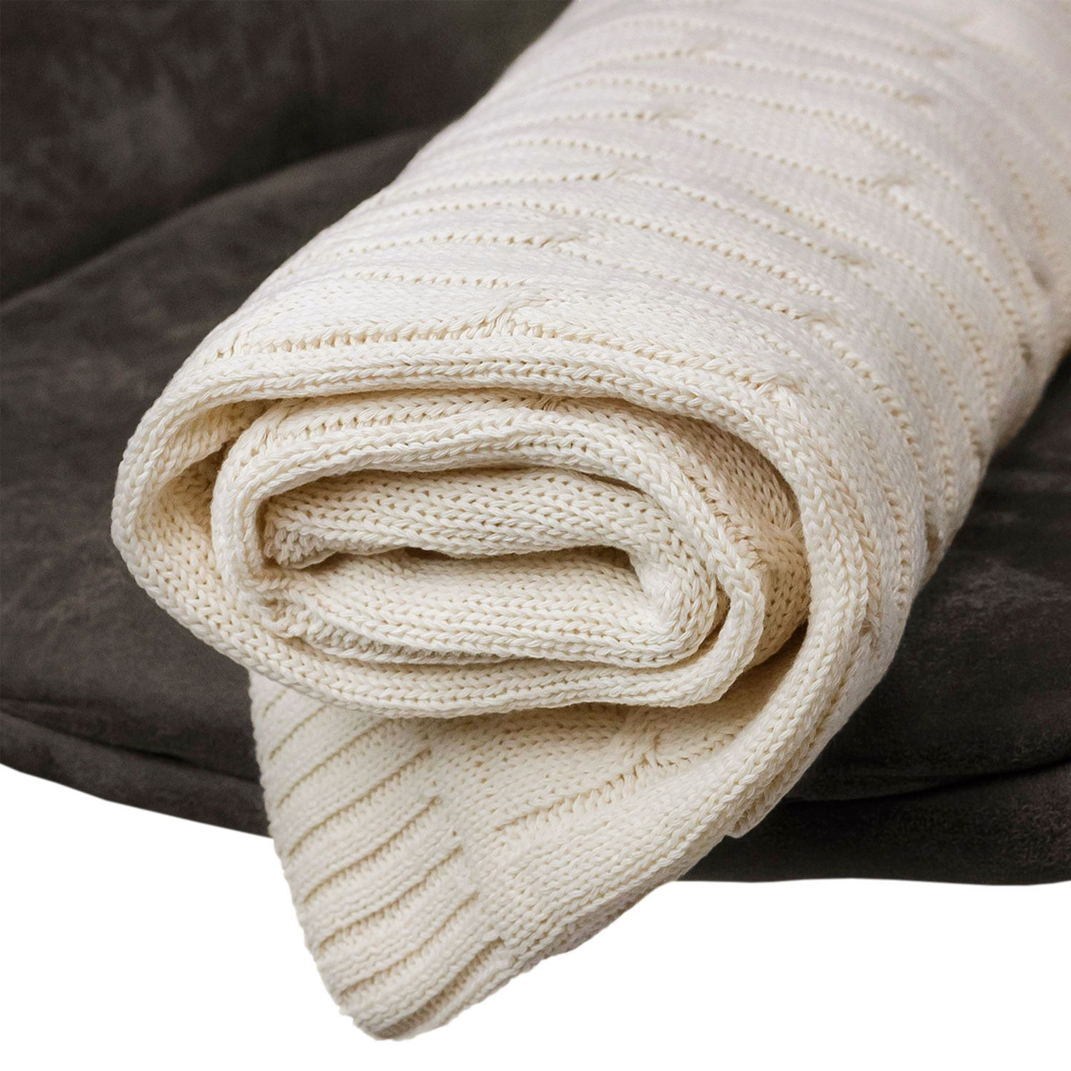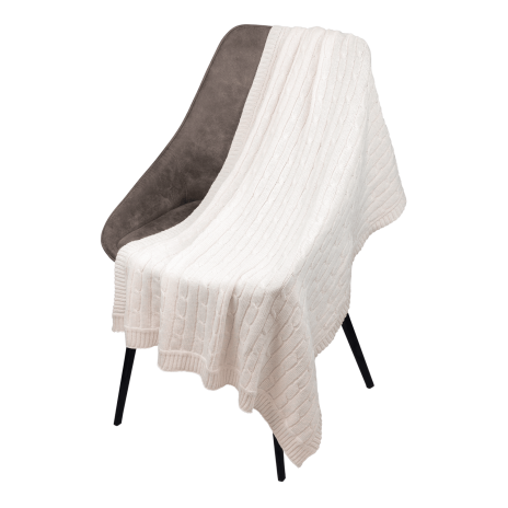 Плед Fado с фактурной вязкой «косы» станет вашим незаменимым спутником как дома, так и на природе. Берите его с собой в путешествия – лёгкий и компактный, он не займет много места в багаже.