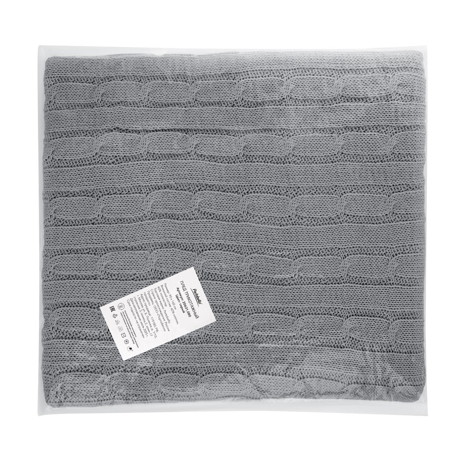Плед Fado вязаный, серый (без подарочной коробки)
