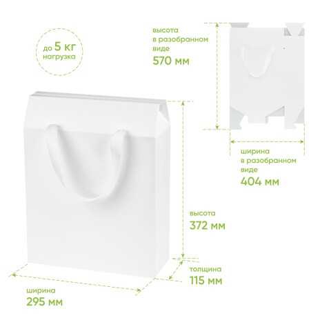 Подарочная коробка-пакет универсальная большая, белая, 295х115х372 мм