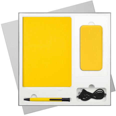 Подарочный набор Sky, желтый (ежедневник, ручка, аккумулятор)