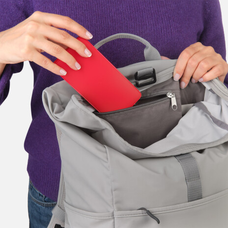 Рюкзак имеет вместительное внутреннее отделение, с внешней стороны рюкзака предусмотрен удобный карман на молнии. С двух сторон рюкзака также располагаются два внешних кармана — для зонта или бутылки с водой. Рюкзак имеет две мягкие регулируемые лямки, которые равномерно распределяют вес содержимого по всей спине и плечам. В основном отделении расположен карман для 15,6-дюймового ноутбука и кармашек для мелочей на молнии.
