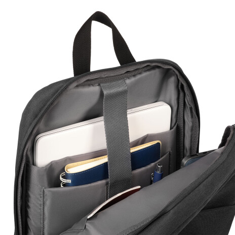 Карманы для ноутбука с диагональю до 15,6 дюймов и планшета оснащены мягкими вставками для их защиты и лентой для надежной фиксации в пути.