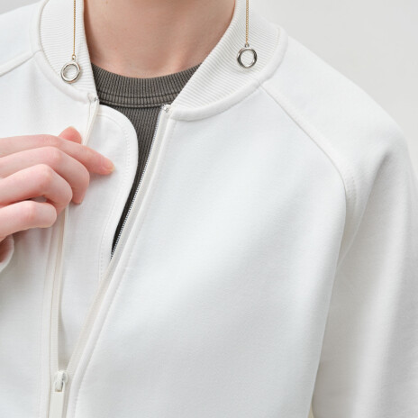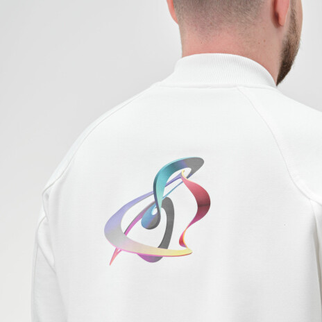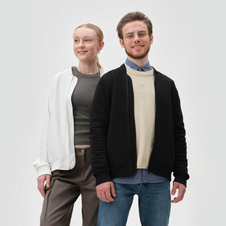 Стильная толстовка бомбер унисекс на реверсной молнии свободного силуэта с прорезными карманами в рамку.