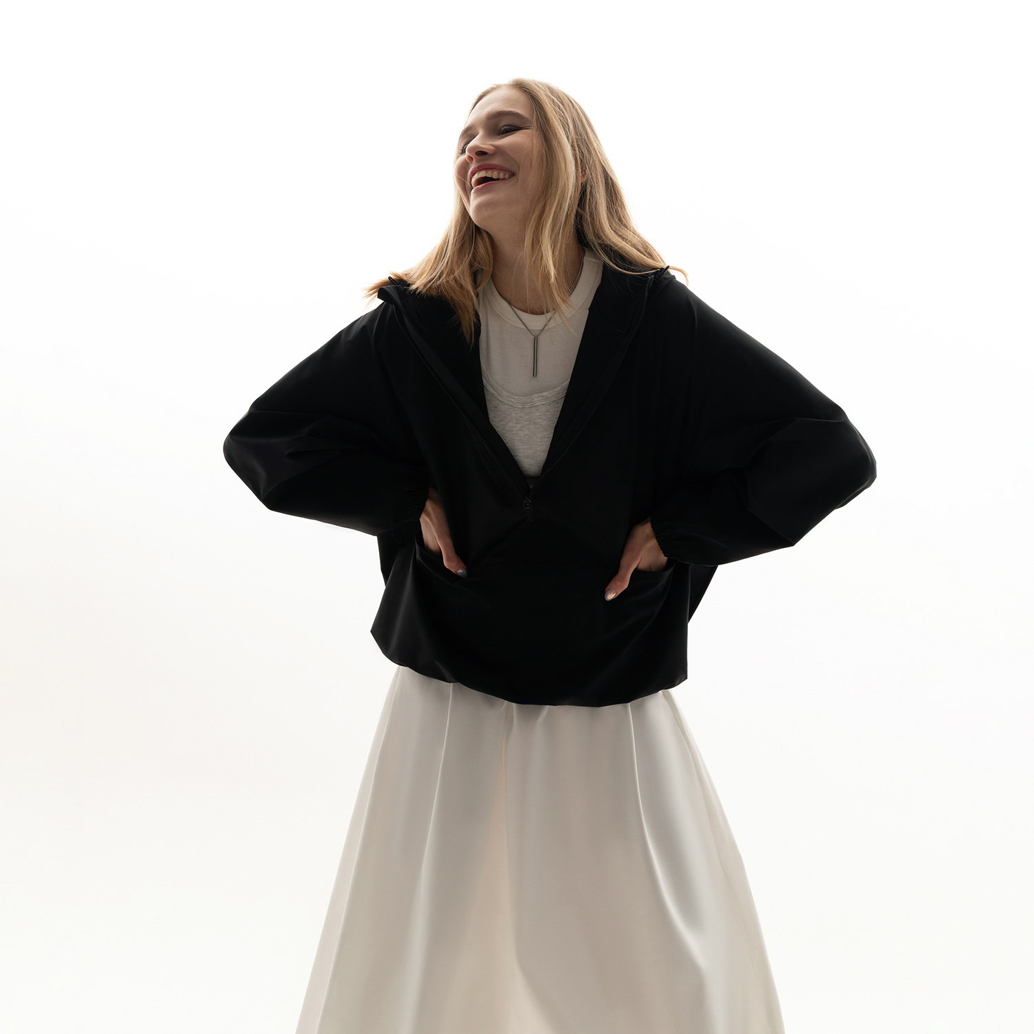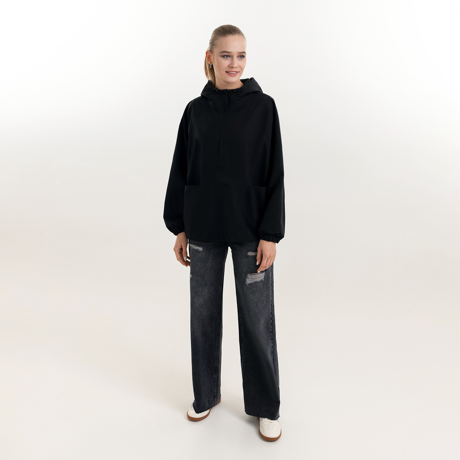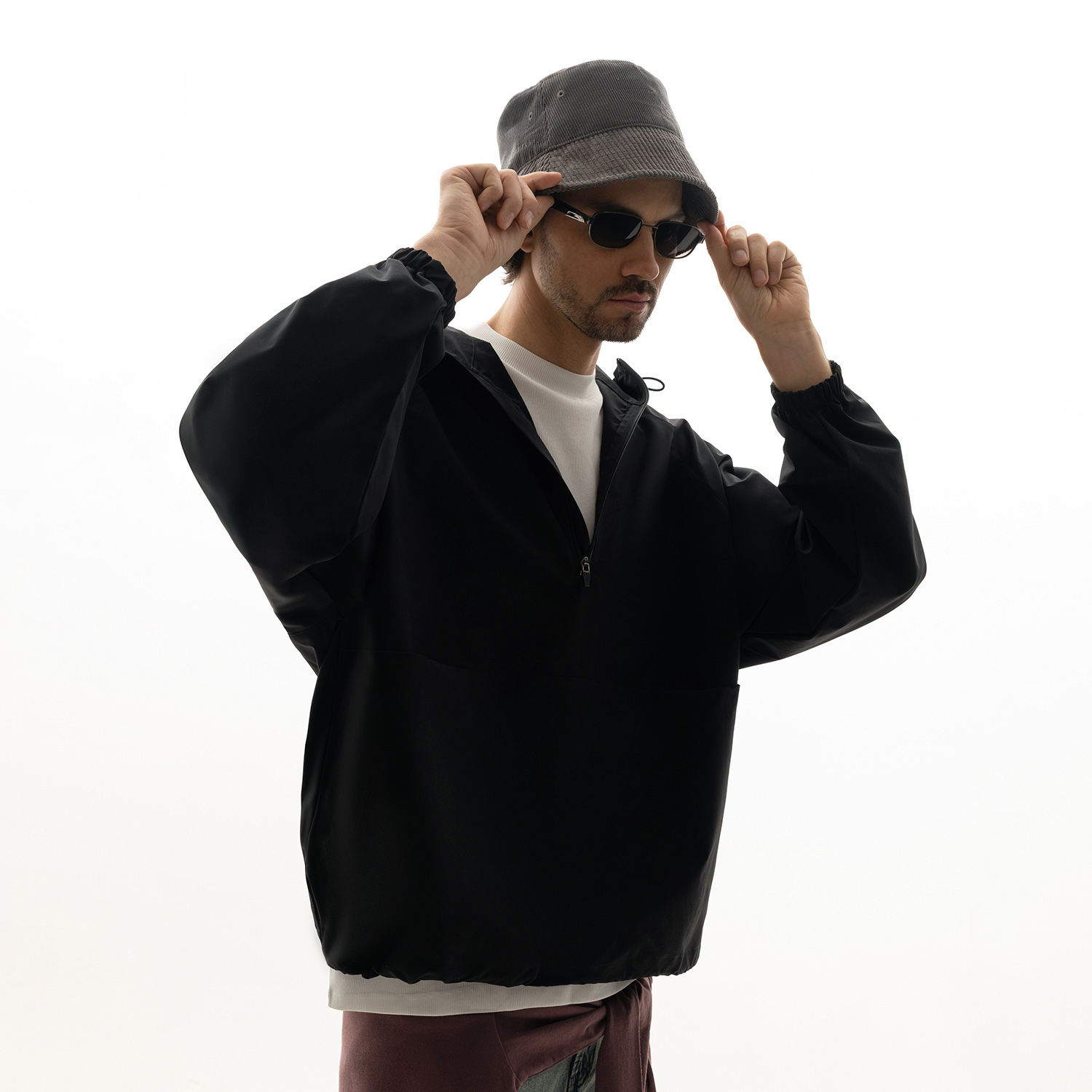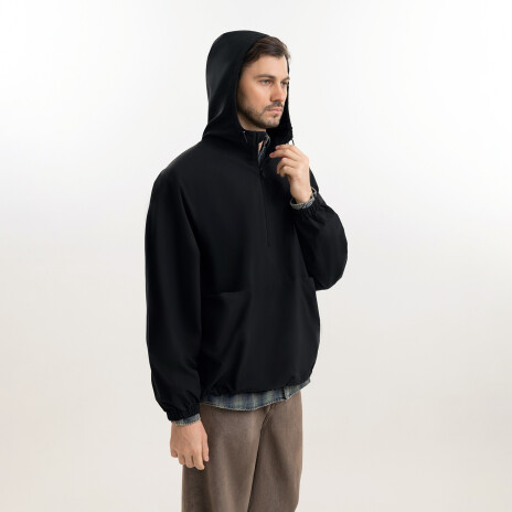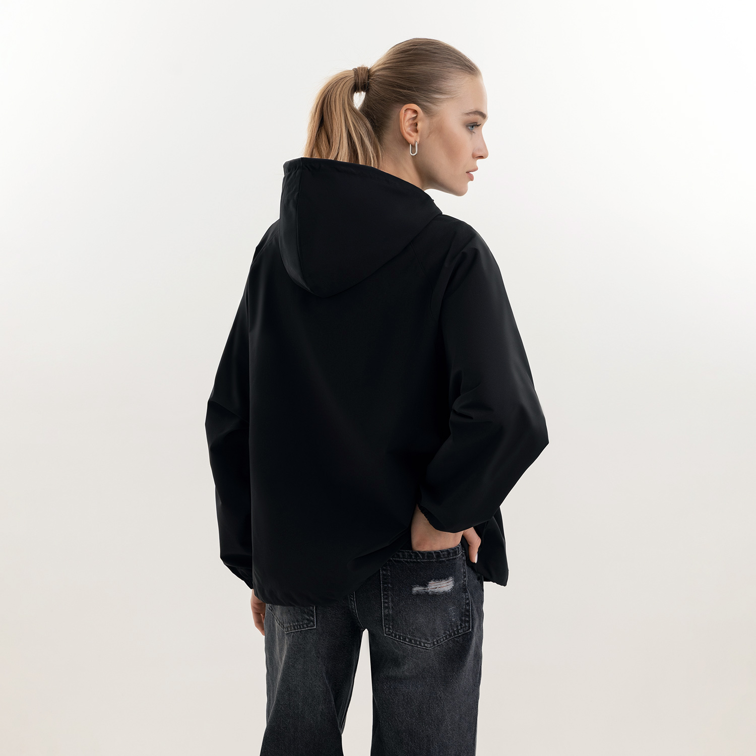 Ветровка (анорак) оверсайз унисекс RISSMAN, черная, размер XS/S