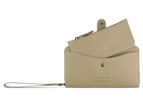 Кошелёк женский BUGATTI Elsa с ключницей, с RFID, песочного цвета, кожа/полиэстер, 18,7х3х10 см