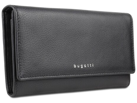 - Кошелёк женский BUGATTI Lady Top, чёрный, натуральная воловья кожа, 20х2,5х10,5 см