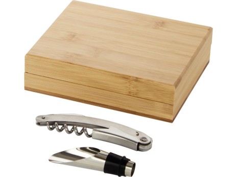 Набор для вина из 2 предметов: штопор официантки и насадка на бутылку. Поставляется в бамбуковой подарочной коробке, изготовленной в соответствии с экологическими стандартами.