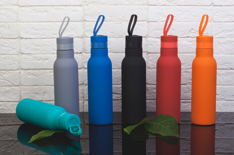 Завинчивающаяся колба защищает от протекания, удобная силиконовая ручка позволяет комфортно носить бутылку.