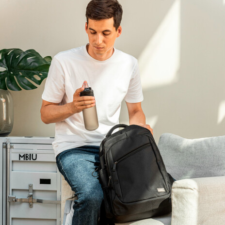 Удобное строение крышки позволяет прикрепить к бутылке карабин — можно цеплять бутылку на сумку, к рюкзаку или на пояс. Оптимальный объем и вес также позволяют разместить ее в небольшой рюкзак или сумку.