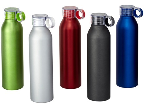 Спортивная алюминиевая бутылка Grom. Одинарные стенки. Откручивающаяся крышка с защитой от протекания и цветным акцентом. Удобная в пути. Объем 650 мл. Алюминий.