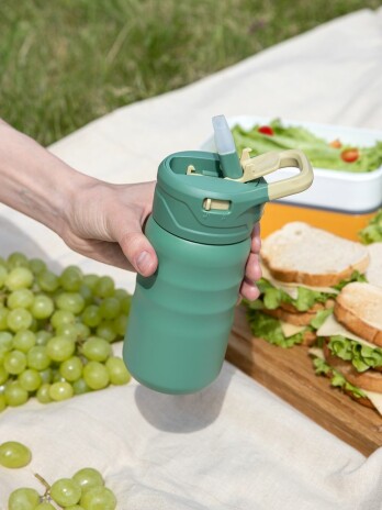 - 2 герметичные крышки в комплекте: с откидным носиком-поильником, с откручивающейся крышкой