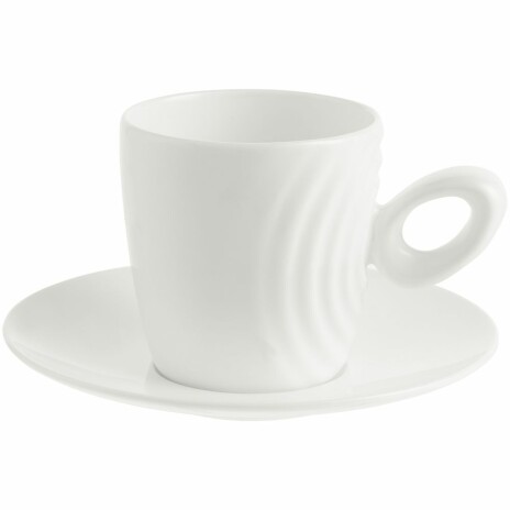 Форма сервиза создана в скульптурной технике: фарфор словно запечатлел сам момент движения. Необычная ручка предметов символизирует камень, от которого появляются завораживающие круги на воде — корпусе изделия.