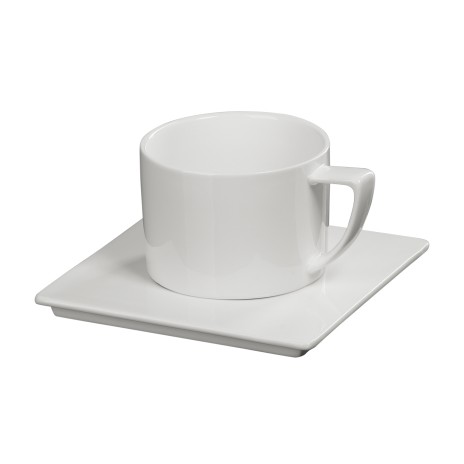 Изделия выполнены из белого фарфора, стильную чашку объемом 280 мл эффектно дополняет оригинальная форма блюдца.