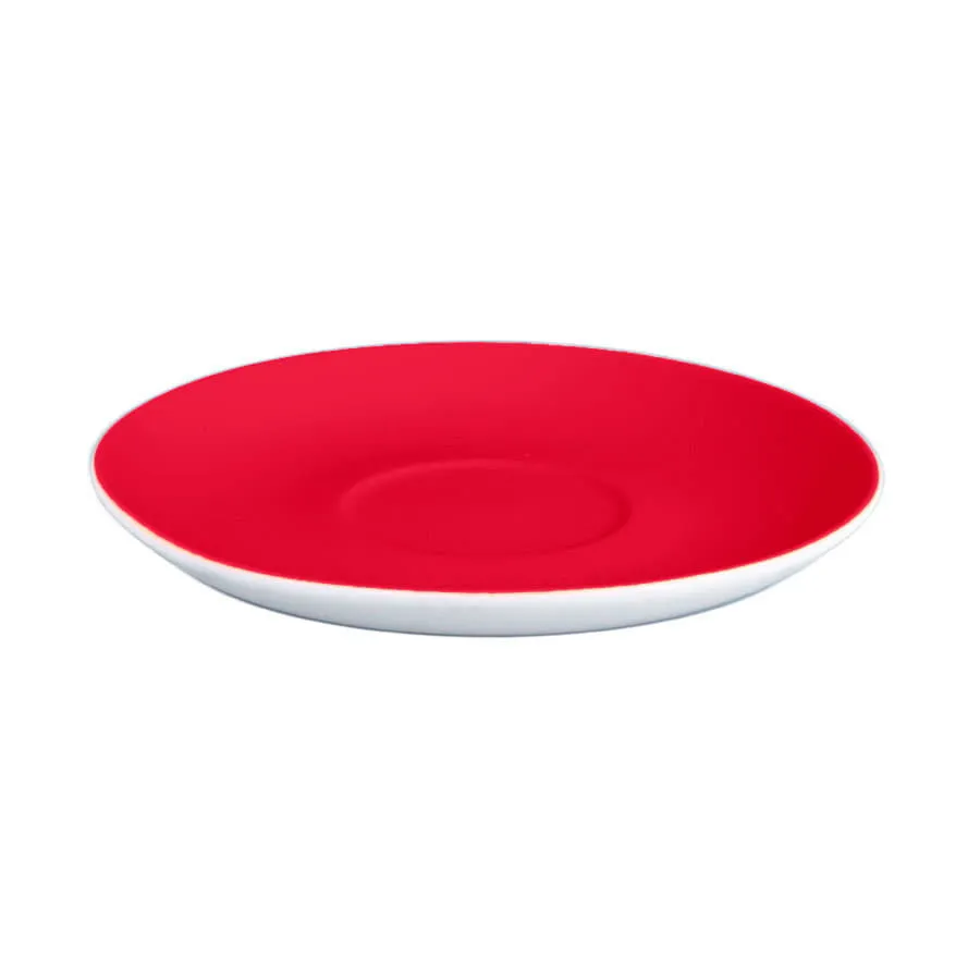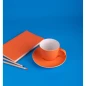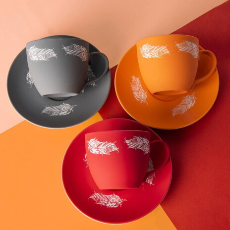 Чайная пара из фарфора с прорезиненным покрытием soft-touchЧашка классической формы и удобное глубокое блюдцеЦвет близкий к Pantone 200C