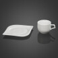 Чайная пара «Вальс» изготовлена из качественного фарфора в белом цвете. Изящный, утонченный дизайн чайного набора придётся по вкусу ценителям классики. Мягкие, плавные линии блюдца притягивают взгляд, а форма чашки кажется самой идеальной для любимого кофе или чая.