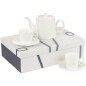 - Размеры: чайная пара: чашка: диаметр 7,9 см, ширина с ручкой 10,7 см, высота 7,4 см; блюдце: диаметр 14,9 см, высота 1,9 см; чайник 14,5х10,3х23,5 см; упаковка 41х27,5х11,7 см
