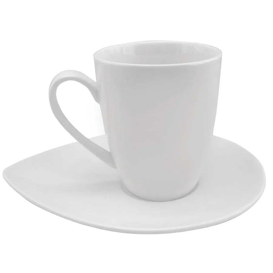 Нежная, изящная, элегантная, утонченная, деликатная – самая очаровательная чайная пара в нашей коллекции! Небольшая кружка и блюдце оригинальной формы в виде лепестка покорят сердце каждой представительницы прекрасного пола. Гладкий белый фарфор – идеальная поверхность для логотипа. Такая классика в оригинальном звучании непременно станет постоянным спутником рабочих будней или уютных вечеров.