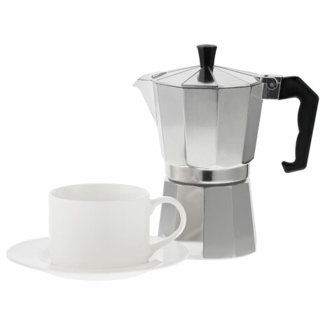 - Материал: пакет - бумага; кофеварка - алюминий, пластик; чайная пара - фарфор