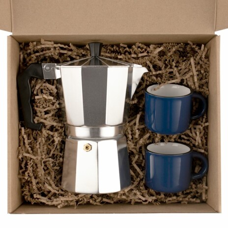 - Материал: кофеварка - алюминий, пластик; кружка - фаянс; коробка - микрогофрокартон
