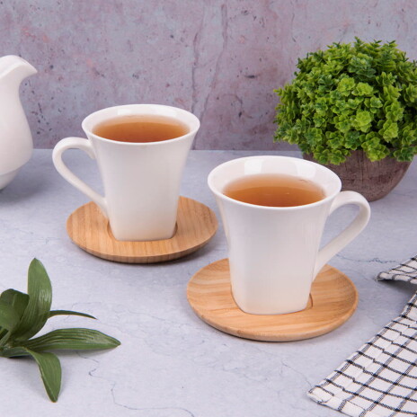 - Чайные пары "Натали" 2 штуки в упаковке, 19,5х19х9см, 200мл, фарфор, бамбук