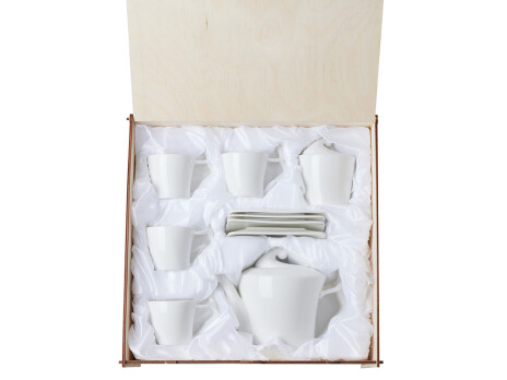 Это не просто посуда, а настоящее произведение искусства для вашего стола. Белоснежный сервиз создан для тех, кто ценит не только вкус, но и эстетику каждого момента. Уникальный дизайн: Ручки чашек и чайника выполнены в виде стилизованной фигуры человека. Это придает сервизу особый характер и глубину, превращая процесс чаепития в диалог с искусством. Полный комплект: В набор входит все необходимое: 4 чашки, 4 блюдца, чайник и сахарница. Эксклюзивная упаковка: Сервиз поставляется в деревянной коробке. Вы можете нанести на нее логтип или памятную надпись. Это готовая идея для безупречного корпоративного подарка. Универсальность и стиль: Белоснежный цвет и лаконичный дизайн делают сервиз уместным в любом интерьере — от классики до модерна.