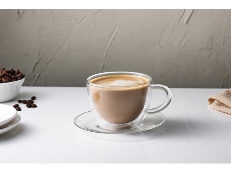 Изысканная чайная пара "Rio" – это гармоничное сочетание стиля и функциональности. Чашка с двойными стенками идеально подходит для наслаждения горячими и холодными напитками, а элегантное блюдце дополняет комплект, придавая ему особый шарм. Особенности: - Двойные стенки из боросиликатного стекла – сохраняют температуру напитка дольше и предотвращают обжигание рук. - Легкость и прочность – стекло устойчиво к перепадам температур, не впитывает запахи и не окрашивается. - Элегантный дизайн – современный и стильный внешний вид, который подойдет для любого интерьера. - Удобное блюдце – дополнение, которое делает подачу напитка еще более изысканной. Эта чайная пара – отличный выбор для утреннего кофе, расслабляющего чая или уютного чаепития с десертом. Не рекомендуется использовать в посудомоечной машине и микроволновой печи.
