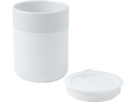 - Java керамическая кружка емкостью 330 мл с силиконовой оберткой и пластиковой крышкой - Белый