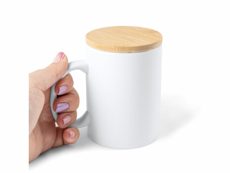 Керамическая кружка Eco line объемом 370 мл. Дизайн с матовой отделкой и бамбуковой крышкой. Это идеальная кружка для подарка.