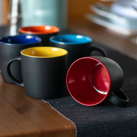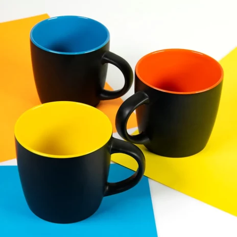 Оригинальная керамическая кружка INTRO объёмом в 350 мл с матовым черным покрытием и яркой цветной внутренней частью будет смотреться эффектно и выразительно на любой поверхности и в любом интерьере. Черный цвет сам по себе способен все оттенить и сделать ярче, а матовый черный делает продукт дороже, солиднее и респектабельнее. Только посмотрите на эти смелые сочетания застывшей вулканической лавы с горной породой, малины в горьком шоколаде, насыщенной почвы с яркой травой или сочного подсолнуха с черными семечками! Благодаря интересному сочетанию цветов кружки INTRO идеально подходят к линейке ручек FORTE SOFT BLACK с черным корпусом софт и яркими элементами. Креативно, благородно и интересно – отличный вариант для корпоративной кухни, авторских кафе или творческих заведений! *Внимание! Логотип mycup на донышке может быть неустойчив к истиранию после воздействия высокой температуры обжига (горячая и холодная деколь) или мытья в посудомоечной машине. Цвет близкий к Pantone 2736C