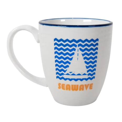 Кружка SEAWAVE выполнена в классическом нежном дизайне. Элегантное сочетание белой посуды с синим кантом всеми давно любимо. Волнообразное покрытие кружки, похожее на рябь на поверхности воды, и подарило ей название – «морская волна». Кружка поставляется в подарочной картонной коробке «крышка дно» и располагает большой площадью для персонализации. Дарите клиентам капельку морского бриза и океанской свежести, и они будут признательны вам за заботу и творческий подход к выбору интересного и полезного подарка!