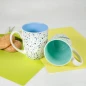 Кружка наиболее популярной формы с нежным цветом внутри и новым необычным покрытием снаружи. TERRAZZO - старинный венецианский узор с мелкими цветными вкраплениями. Изначально использовался для декорирования пола и изделий из камня. В современном интерьере этот материал стали использовать в самых неожиданных вариациях, при изготовлении посуды, мебели, кухонных фасадов, для оформления интерьера ванных комнат, в качестве светильников и других аксессуаров для дома. А проекты с использованием терраццо в интерьере заполонили Instagram и Pinterest дизайнеров и поклонников дизайна по всему миру. Цвет внутренней части близкий к Pantone 2121C Внимание! Рисунок (цветные вкрапления) может просматриваться через нанесенное изображение