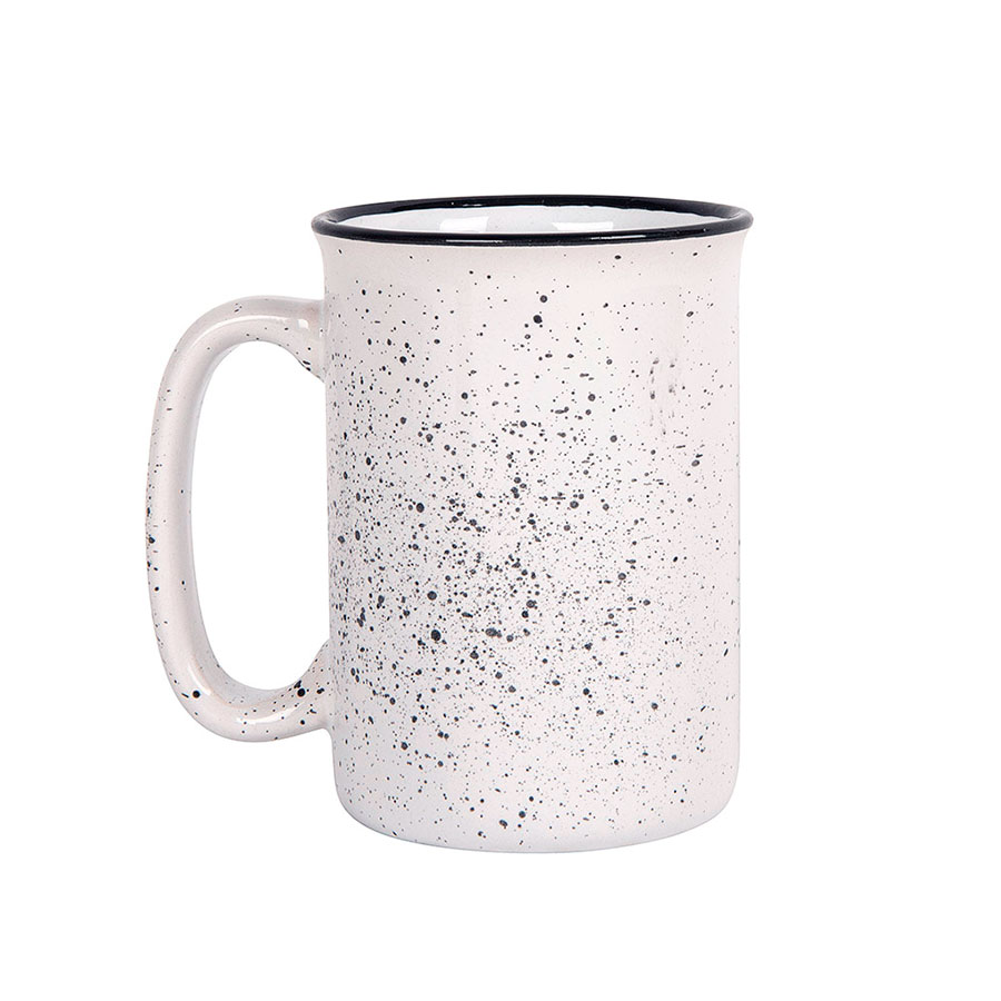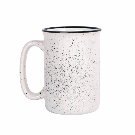 Необычный дизайн кружки получился путем создания эффекта брызг на поверхности. Они нанесены неравномерно и лишь подчеркивают уникальность каждой кружки. Точки краски различной величины напоминают хаотично разбросанные по ночному небу звезды. Вместительная кружка с очень удобной ручкой.