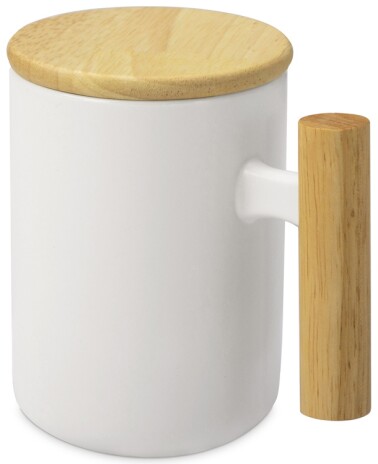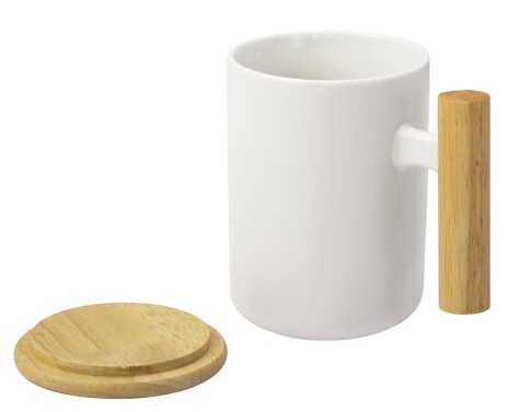 - Кружка с ручкой и крышкой из каучукового дерева Jeny, белый