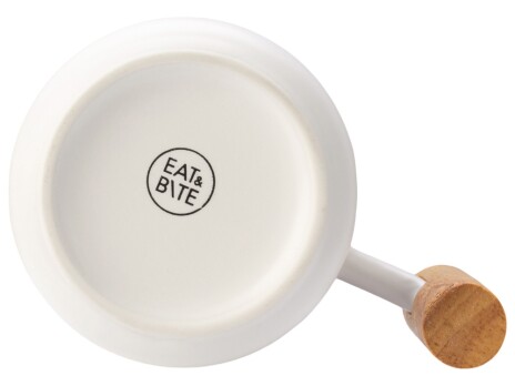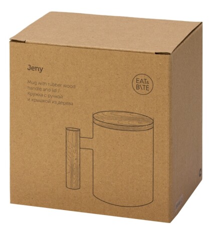 Лёгкая и практичная кружка от бренда Eat&Bite выполнена из костяного фарфора. Кружка имеет удобную ручку из тактильно приятного каучукового дерева. Jeny оснащена деревянной крышкой, которая поможет дольше сохранять температуру напитка. - объём: 350 мл; - стильный дизайн; - натуральные материалы; - крышка подходит для брендирования. Натуральные материалы требуют аккуратного ухода, поэтому кружка подходит только для ручной мойки. Не использовать в микроволновой печи.