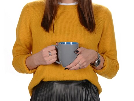 "Gracy" - прекрасный выбор для тех, кто скорее предпочитает большую чашечку свежесваренного утреннего кофе, нежели глоток эспрессо. Кружка выполнена из достаточно легкой и тонкой керамики, её удобно держать в руке за счет большой ручки. Большой объём позволит наслаждаться любимым напитком в течение долгого времени. Нейтральный серый внешний цвет и широкая палитра ярких внутренних идеально подойдут под нанесение любого логотипа, надписи или изображения. - целых 450 мл в объеме - эффектное сочетание на контрасте внутреннего и внешнего оттенков глазури - одна из самых удобных ручек - глянцевая с обеих сторон