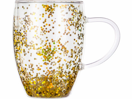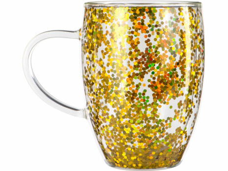 - Кружка с двойными стенками с блестками, 360 мл, золотистый