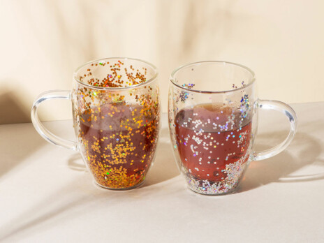 Кружка с праздничным настроением сделает любое чаепитие немного ярче и настроит на позитивный лад. Яркие блестки свободно перемещаются между двойными стенками: просто встряхните кружку, и вихрь цветных блесток взметнется наверх. Двойные стенки позволяют не обжечь ладони, даже если внутри — самый горячий напиток, а удобная широкая ручка дает комфортно обхватить кружку. Обратите внимание на то, что ручка не нагревается: это делает ее особенно удобной и объясняется конструкцией. Материал — боросиликатное стекло: легкое, словно пластик, прочнее обычного минерального стекла, и при этом такое же безопасное для человека. Кружку можно использовать с напитками до 150 градусов Цельсия, мыть в посудомоечной машине. - жаропрочное боросиликатное стекло - не обжигает руки: двойные стенки и не нагревающаяся ручка - безопасный для человека прочный материал - блестки не статичны, а подвижны: при встряхивании они меняют свое положение - нельзя разогревать в СВЧ-печи - можно мыть в посудомоечной машине