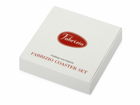 Продукция линейки Fabrizio выглядит элегантно и богато, а ее ассортимент состоит из разнообразных товаров, обладающих "фамильным" лоском Fabrizio. Все товары выполнены из PU-кожи, искусственного материала, который напоминает натуральную, но создан с любовью к природе - при создании продукции Fabrizio ни одно животное не пострадало. Материал прекрасно подходит для тиснения, которое особенно выигрышно будет смотреться на столь роскошных аксессуарах. Набор состоит из четырех подставок и ремня-чехла, с помощью которого костеры очень удобно хранить в одном месте. Подставки круглой формы идеально подойдут для бокалов разного диаметра. Универсальная форма, легко моющийся материал, персонализация на самих костерах, а также ремешке.