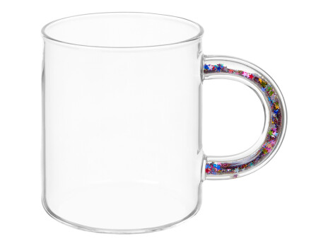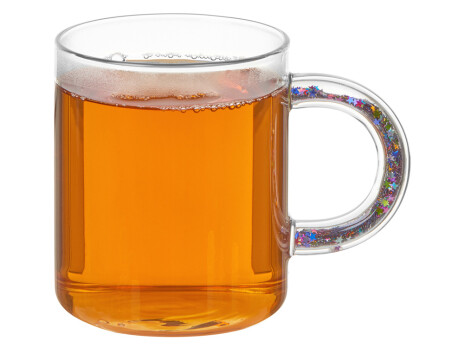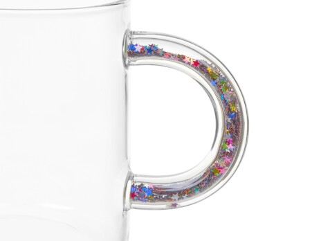 "Feria" имеет необычную особенность, которая превращает ее в базу для фантазийного мерча — ручка кружки полая и заполнена разноцветными блёстками разной формы. Перекатывание блёсток во время использования кружки подарит положительные эмоции и точно придётся по вкусу как детям, так и взрослым, привлекая внимание. - жаропрочное боросиликатное стекло легкого веса; - блёстки в ручке кружки не только украшают ее, но и выступают своего рода антистрессом; - большой объём в 400 мл; - можно мыть в посудомоечной машине.