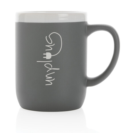 Эта керамическая кружка с минималистичным дизайном украсит любой рабочий стол или кухню. Белый ободок смотрится стильно и позволяет легко комбинировать изделие с другими предметами. Кружка матовая снаружи и глянцевая внутри — еще одна необычная деталь. Совместима с посудомоечными машинами, соответствует стандарту EN12875-1 (не менее 125 циклов мытья для всех видов персонализации, выполненных на европейском производстве компании). Поставляется в индивидуальной коробке. Объем: 300 мл.