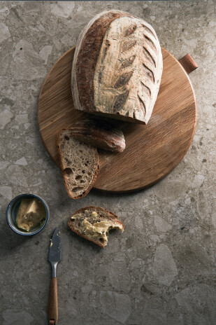 Круглая доска из натурального дуба. Отлично подходит для сервировки ваших любимых блюд. Изготовлена из древесины дуба, сертифицированной FSC. Украшена аккуратной деталью под кожу.