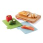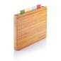 В набор разделочных досок входят одна разделочная деревянная доска размером 35 х 25 см и 4 доски из PP. Разделывайте рыбу, мясо, овощи, хлеб и храните все 4 доски в одной компактной подставке. Вы никогда не перепутаете, для чего предназначены ваши доски. Каждая имеет свой ярлычок-индикатор, который выступает из общей подставки. Кроме того, все доски разного цвета, что делает их использование еще более удобным.