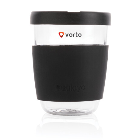 - Стакан из боросиликатного стекла Ukiyo с силиконовой крышкой и держателем
