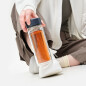 Бутылка сделана из боросиликатного стекла, которое отличается устойчивостью к высоким температурам, перепадам температур и коррозии. Стекло не вступает ни в какие химические реакции с напитками, не боится ни кислот, ни солей, ни накипи. Благодаря стенкам из двойного стекла, бутылка сохраняет тепло до 2 часов. Кроме того, ее спокойно можно держать руками, даже если в ней кипяток.