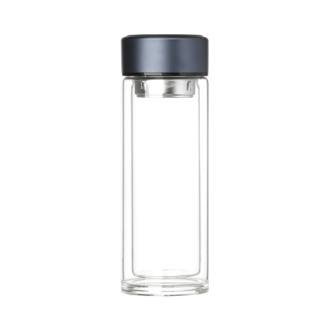 Стеклянная бутылка с двойными стенками позволит носить свежезаваренный чай с собой. Ситечко позволит заварить чай прямо в бутылке.