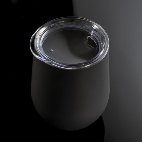 Кофер с тактильно приятным покрытием софт-тач имеет двойные стенки из нержавеющей стали и пластиковую крышку с эргономичным отверстием.