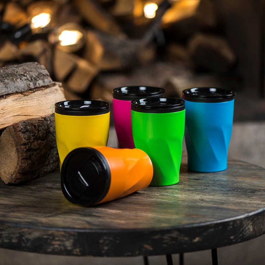 Коллекция дорожных промо-кружек NEON, отличается яркими матовыми цветами и оригинальной формой. Внимание: в этой модели колба выполнена из пищевого термоустойчивого пластика (PP). Внешние стенки стальные. Кружка не является вакуумной. Сохранит температуру горячих напитков - 1,5 часа, холодных 3 часа. ВНИМАНИЕ! Цена снижена из-за особенностей покрытия (см.фото).