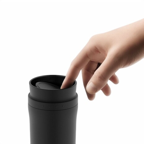 - Герметичная завинчивающаяся крышка с силиконовым уплотнителем и питьевой системой с клапаном — технология 360° позволяет одним нажатием открывать кружку и пить с любой стороны