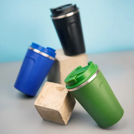 Термокружка-непроливайка с двойными стенками с откидным клапаном для питьяКолба и корпус из нержавеющей стали.Матовая микрорельефная фактура корпуса достигается благодаря особому покрытию - powder coatingЭто специальное порошковое окрашивание, более прочное и долговечное Сохраняет температуру напитков до 3-4 часов.Индивидуальная упаковка - коробка из крафтового картона